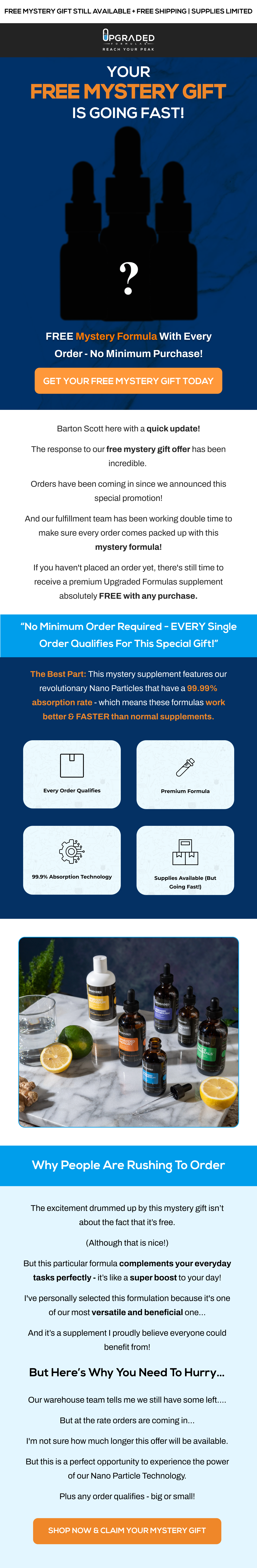 Our Story: Regarding the founding of Upgraded Formulas, we wanted to share something interesting about our remarkable journey in the field of nutritional science. Barton Scott, a Chemical Engineer and the founder of our company, began this journey following an unprecedented decline in his cognitive function.