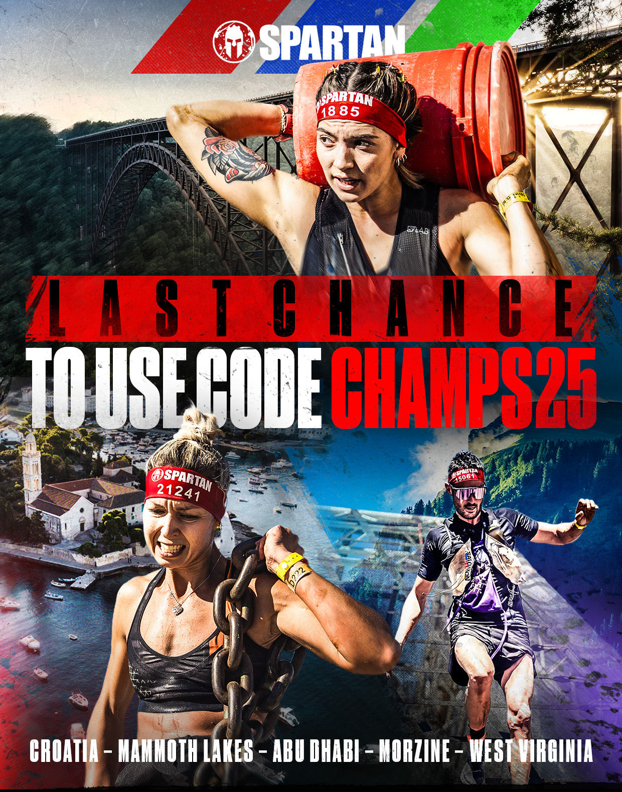 Witness the Spartan camaraderie, festivals, and raw grit of the Championship events. Where in the world will you go: Morzine, West Virginia, Mammoth Lakes, Hvar or Abu Dhabi?