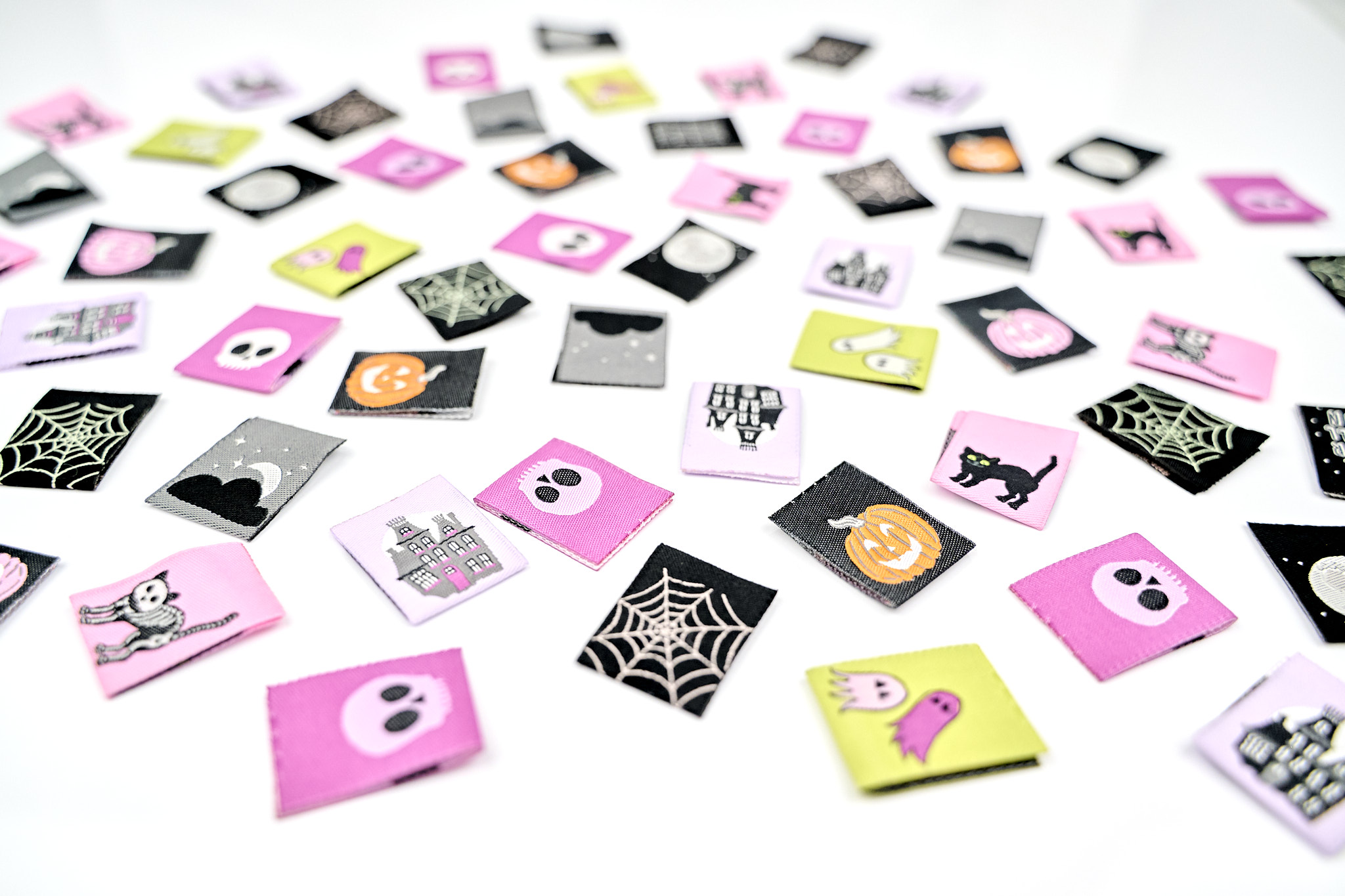 HAPPY BIRTHDAY - WOVEN LABEL PACK This festive 8-piece label set is packed with birthday joy! Think sweet cupcakes topped with candles, cheerful balloons, playful banners, and all the little details that make a birthday feel truly celebratory. Bright, happy, and full of fun, each double-sided, center-fold label is perfect for finishing birthday gifts, marking milestone makes, or adding a pop of party energy to bags, quilts, garments, and more. Because handmade birthdays deserve a little extra sparkle. | | SPOOKY NIGHT - WOVEN LABEL PACK When the moon is full and the shadows dance, Spooky Night comes alive. This hauntingly fun 8-piece collection features eerie designs like a curious black cat, delicate spider webs, floating ghosts, a haunted house, and a glowing full moon. Several designs even glow in the dark, making these labels a total showstopper. Perfect for Halloween stitching—or for makers who keep it spooky year-round—these double-sided, center-fold labels add just the right amount of frightful charm. | | | | |