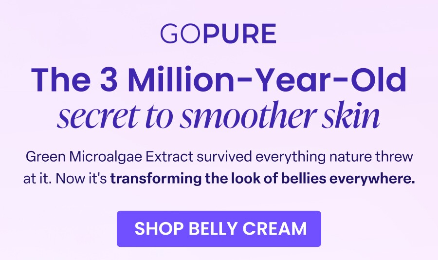 GOPURE The 3 Million-Year-Old secret to smoother skin Green Microalgae Extract survived everything nature threw at it. Now it's transforming the look of bellies everywhere. SHOP BELLY CREAM Hey Debarshi, Commonly used in nutrition, agriculture, and pharmaceuticals… this tiny ingredient packs a punch. Green Microalgae Extract improves the appearance of stretch marks and helps loose skin look tighter. GREEN MICROALGAE Supports skin's natural collagen to fade the look of stretch marks Research shows*: • Polysaccharides and fatty acids that can boost collagen, moisture, and skin resilience. • Antioxidants that can reduce oxidative stress and delay skin aging. • Bioactives that can improve skin repair and elasticity. Nature spent millions of years perfecting this. We just put it where you need it most in our Belly Cream. SHOP BELLY CREAM NOW 60 DAY GUARANTEE DERMATOLOGIST RECOMMENDED 100K+ 5-STAR REVIEWS @gopurebeauty [Social Icons: Instagram | Facebook | TikTok | YouTube] *Chirijno, N., & Golzary, A. (2025, August 6). Microalgae: Revolutionizing skin repair and enhancement. PMC PubMed Central. https://pmc.ncbi.nlm.nih.gov/articles/PMC12355925/ If you have questions, concerns, or ideas, please get in touch—we'd love to hear from you. Contact us here. We use email to share skincare tips and new products with you, as well as special offers. It is wonderful having you part of the family! GOPURE, 3835 E Thousand Oaks Ste R384 Westlake Village, CA 91362 We respect your right to privacy. Unsubscribe | Manage Preferences | View in Your Browser